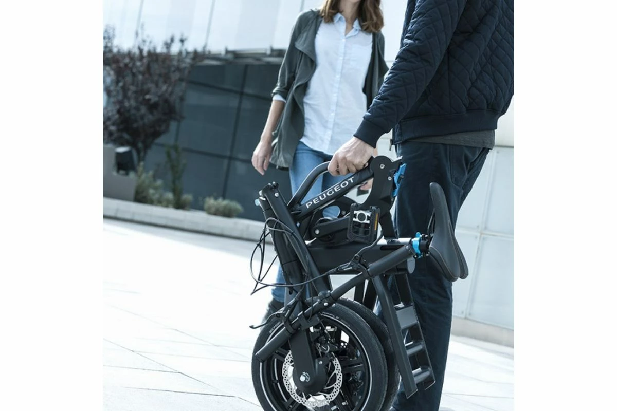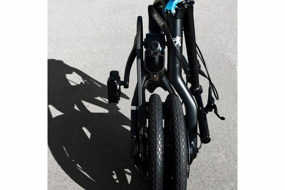 Les équipes de PEUGEOT Design LAB ont tout mis en œuvre pour proposer un vélo pliant électrique à la fois bien pensé et esthétique. Le pliage, très bien pensé, s’effectue en quelques secondes et laisse place à une poignée pour le transporter et transformation le porte-bagage en une béquille pour ranger ce eF01.